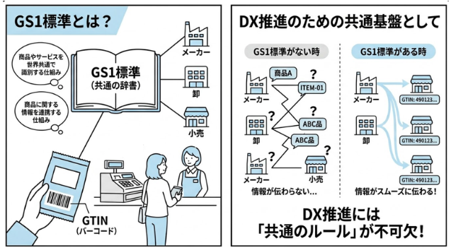 なぜなら、メーカー・卸・小売といった異なる企業間で情報をやり取りするとき、「共通のルール」がないと正確なデータ連携ができないからです。