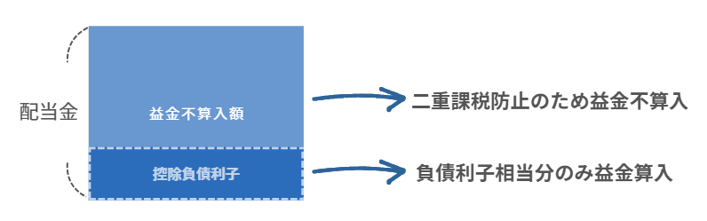 関連会社株式を取得するために借入金を使っていた場合など、その利息相当額は二重課税にあたらないため、この部分は益金算入(=課税)として扱われます。